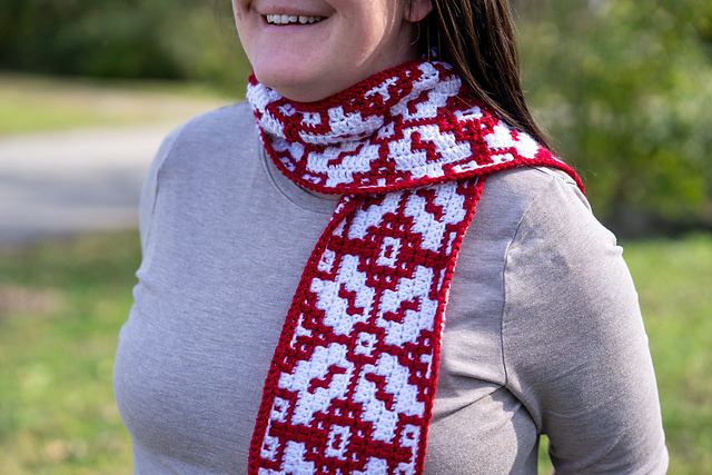 Looking to get into the Christmas spirit <i>and</i> get a taste of mosaic crochet? You've come to the right place! This Christmas scarf is so fun to make and will add a warm and festive touch to all of your holiday outfits. The Nordic Star Mosaic Scarf is a great intro mosaic crochet project, since the pattern is only 25 rows in total. You'll invest a relatively small amount of time and end up with a beautiful crochet gift for the holidays (or as a special treat for yourself)!