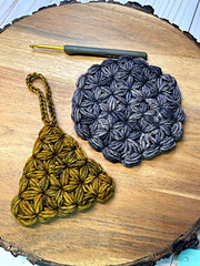 This was created as a supplement for a crochet class I teach at my lys. The pattern includes instructions and schematics to make the Jasmine Stitch Tree Ornament (worked flat), and also the Jasmine Stitch Coasters (worked in the round).