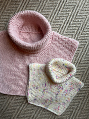 Always make sure to gauge swatch to ensure your neck fits and you like the fabric you’ve created. Unlike most patterns, your stitch gauge will dictate the length of your neck/dickie and your row gauge will dictate the width. If using a drapey fibre like alpaca, it’s better to go with the snuggly neck option. If you have a high wool content go with the relaxed neck option.