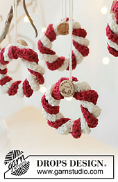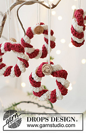 **Crocheted wreath in DROPS Safran. The piece is worked back and forth with treble crochets. Theme: Christmas.**