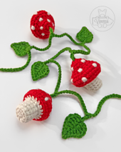 This free crochet mushroom bookmark and garland pattern set has a difficulty rating of **intermediate**.