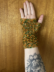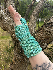 Whispers of Witchlings Fingerless Mitts , by Pretty Twisted Knots. Let’s have an adventure in textured Crochet featuring Crocodile stitch, Front Post & Back Post crochet. My inspiration born of my love of Fantasy Fiction, magic…Witches and Nature. The twisted stitches of the hand are to represent the organic threads of a spell. The scales of the wrist pattern the armour of the witches magic.