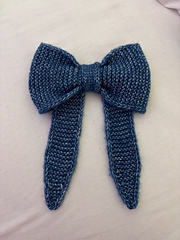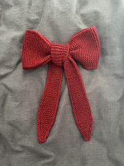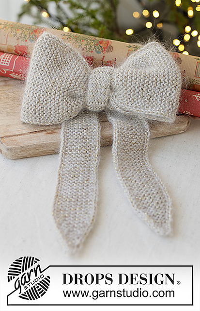 **Knitted bow/Christmas decoration in DROPS Flora, DROPS Kid-Silk and DROPS Glitter. The piece is worked from side to side with garter stitch and I-cord. Theme: Christmas.**