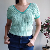 La Maglietta Rosemary V-Neck si lavora con righe di andata e ritorno in un unico pezzo. Il giromanica ed il girocollo sono sono rifiniti in seguito con la mbss cd.