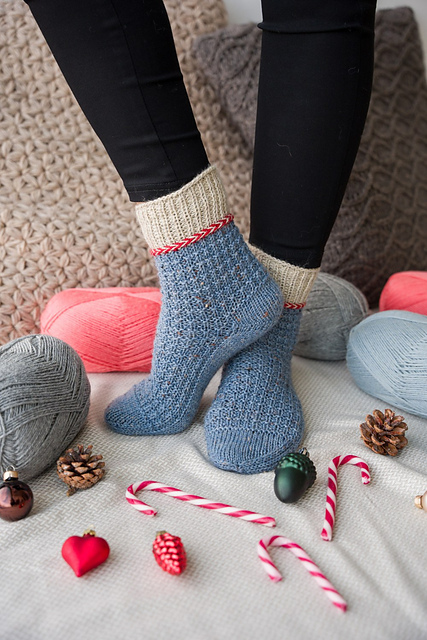 Damit die Socken noch eine reelle Chance haben bis Weihnachten fertig zu werden, habe ich mich für ein Modell aus 6-facher Sockenwolle entschieden.