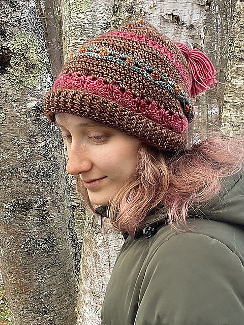 Start at the brim with post stitches and move up the hat using a variety of colors and stitch patterns for a quick-to-crochet hat which is both fun to make and fun to wear!