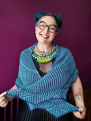 Stepping Stones *is a crescent-shaped shawl pattern that will hold your hand and take you step by step from garter stitch to fancy brioche.