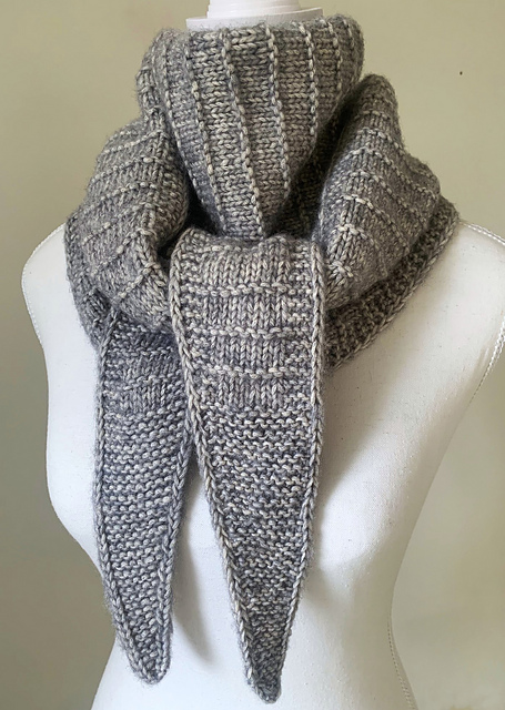 *Craigavon is a triangular shawl, knit sideways from tip-to-tip. It starts at one tip, and is worked with increases on one edge until the desired width is achieved, and then the second half is worked with decreases to the opposite tip.*