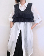 When choosing CC mohair, choosing one with a longer pile will give the ruffles more volume and make them look cute. When worn, the V-neck opens up for a relaxed fit.
