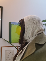 This pattern is a mix between a hood and a scarf, it will will keep you warm and cosy even in cold windy conditions !