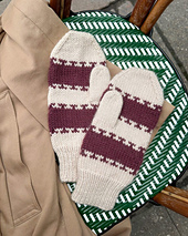 The Key Mittens are worked from the wrist up. The thumb is worked at the end. The mittens are worked either on a long circular needle using the Magic Loop technique or on double-pointed needles.
