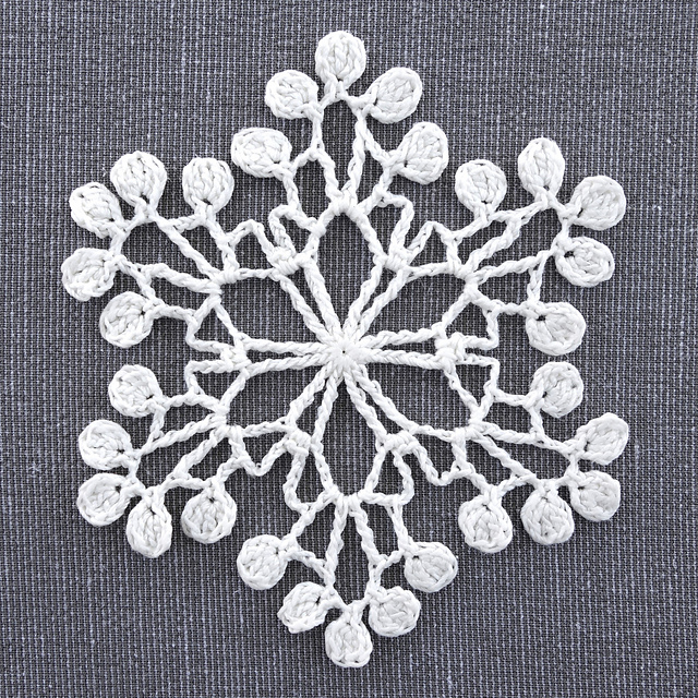 This pattern includes written instructions only and photo tutorial on stiffening snowflakes. There are no charts.