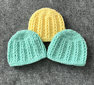 Columns of paired post stitches create texture in this newborn hat. A video tutorial is available to guide beginners through forming the post stitches.