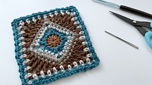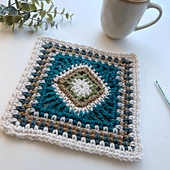 Finished Size of Square is 5.5 inches using worsted yarn and suggested hook