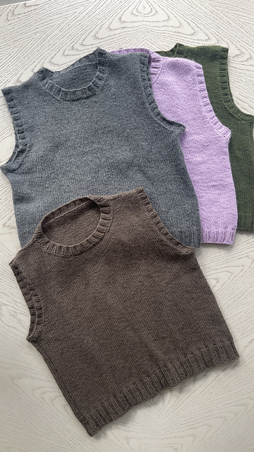 I have shown it knit in color 3368 Bolsena, 089 Alabama, 3563 Dark Grey, ACI Army, 2884 Lilac
