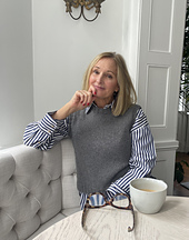 Hello Friend is worked top down on 4.5 mm / US 7 needles. First the top of the back is worked flat while shaping the shoulders and then the armholes. The back stitches are placed on hold while the front is worked. Stitches are then picked up on either side of the back shoulders while shaping the front neckline and then armholes. The two pieces are then joined to begin working in the round. A purl stitch between the front and the back pieces adds the illusion of a side seam.
