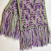 Depending on your gauge, the finished scarf will measure approximately 50” L x 6” W, before blocking, and excluding the fringe.