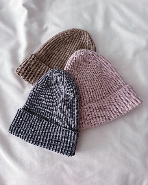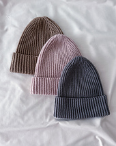 **Marrow hat** is a ribbed, unisex hat for the whole family. This hat is designed in half-twisted ribbing pattern, both easy and engaging to knit. Half-twisted ribbing creates a manufactured looking fabric and it’s worked easier than fully twisted ribbing.