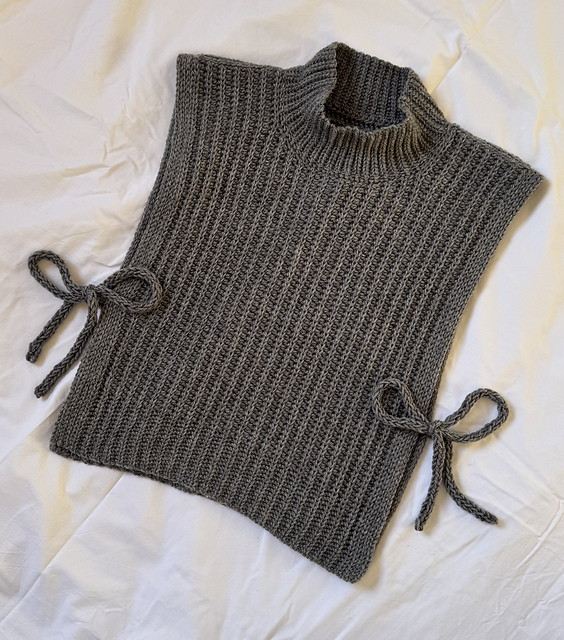 The Simplicity Slipover is worked from side to side in back and forth rows and it is designed to have approx. 5 – 15 cm of negative ease. This means it will measure 5 – 14 cm less than your bust circumference.