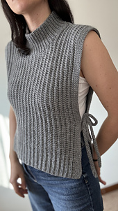 Il gilet Simplicity si lavora con righe di andata e ritorno da lato a lato ed è disegnato per avere un’agio negativo da 5 - 14 cm, ciò significa che è progettato per essere di circa 5 – 14 cm più piccolo della tua circonferenza seno.