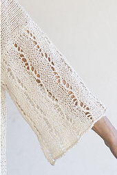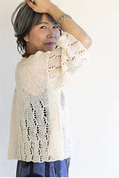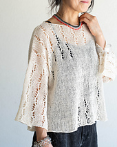 This pullover combines stockinette stitch with an eyelet pattern. The eyelets are created with two stitches on right-side rows, and all wrong-side rows are worked with purl stitches. It's fun and relaxing to work the moving eyelet lines with the help of stitch markers while creating a unique fabric.
