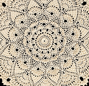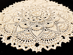 Your tension will determine things like hook size, yardage, finished size, and height of stitches. Any of these things can be adjusted as needed. Using recommended thread and hook this pattern will use minimum 650 yards / 630 metres of thread. And your finished doily will be about 20” / 50 cm in diameter.