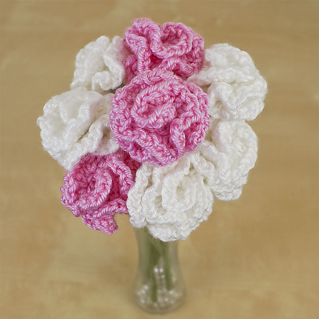 Note: This pattern is Donationware - the pattern is available for free, but if you like it please consider sending me a donation to show your appreciation. The PDF version, available for any size donation, is formatted for easy viewing and printing, and includes bonuses (additional assembly photos and a special technique for fastening off the yarn neatly at the base of the stem). The complete pattern is available to view in full (for no charge) from the linked page.