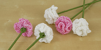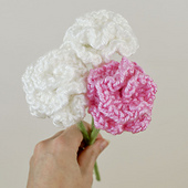 **Option:** This pattern will work with any size yarn, provided you choose a suitable hook size for your yarn. For a lifesize carnation, I recommend worsted or DK weight yarn.