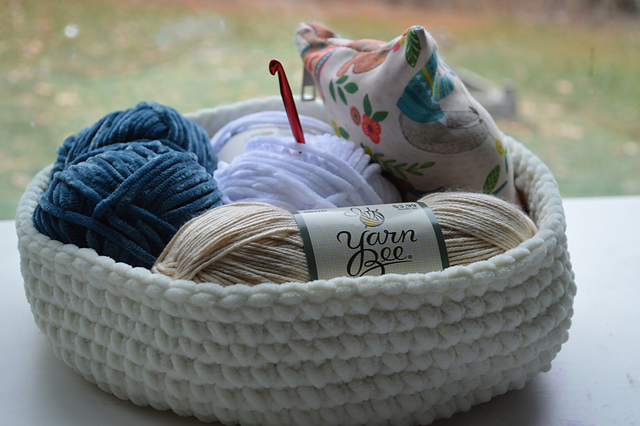 *Hook(s):* I used size J/10-6.00 mm crochet hook, but make sure to use one or two sizes smaller than the recommended hook that the yarn ball band recommends. This will ensure that your basket is stiff and sturdy enough to act like a basket.
