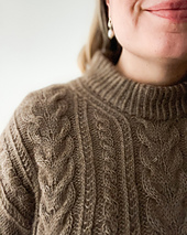 For the stitch patterns to show best, I recommend choosing unicolor or slightly tonal colorways. The Vivi pullover is worked by holding one strand of fingering weight yarn together with a strand of silk mohair but you can also knit it with a single strand of DK weight yarn.