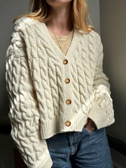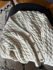 Jacket No. 2 is an oversized cabled cardigan with a v- neck.