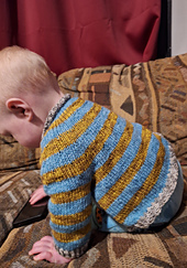 Crafted with gentle, baby-friendly yarn, the cardigan features delicate stripes that add a playful touch while ensuring a cozy fit for your little bundle of joy. Designed for easy dressing, it slips on effortlessly, making it perfect for layering and a breeze for busy parents.