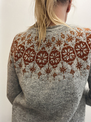 Some last short rows are worked to finish the yoke shaping right before sleeve stitches are placed on hold. The body is then worked in rounds down to the hem. Sleeves are worked top down to the cuffs last. No finishing required.