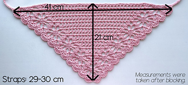 This bandana is customizable in size, depending on the yarn and hook size you use, however, I do not recommend using yarn thicker than weight 3. This pattern can be easily used to crochet a shawl instead.