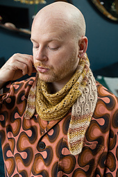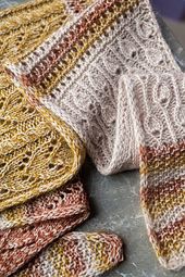 *The stitch patterns feature simple knits and purls together with fascinating lace motifs. The combination of marled color changes and different stitch patterns make this a project that you can’t put down. You will be knitting “just one more row” toward the final decrease point. Wrap the skinny scarf around once or tie it around your neck for a decorative collage of color.*