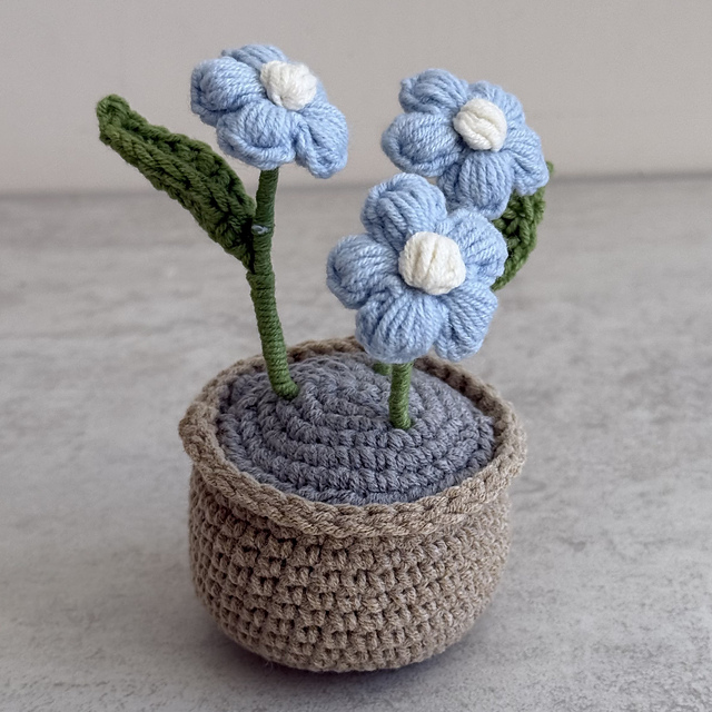 Create your own adorable crocheted puff stitch flowers with leaves and a stem, all neatly placed in a charming crochet pot! This instant-download PDF pattern provides step-by-step instructions, perfect for both beginners and experienced crocheters.
