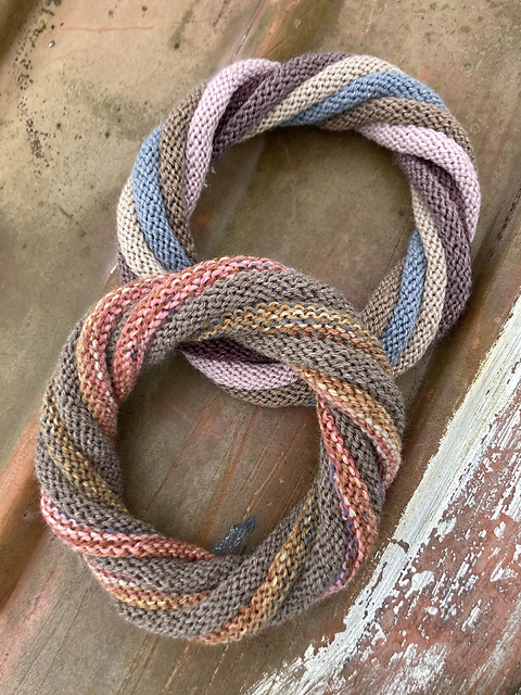 You can knit in one or several colors, and the short repeats are particularly suitable for using several colors of scrap yarns.