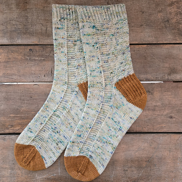 The sock is knit from the top down with a garter edged heel flap and traditional gusset. I finished it with my version of a rounded toe.