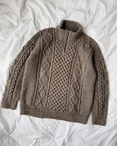 The Dagmar Zipper Sweater Man is worked from the top down in cable and texture patterns. First the back yoke is worked flat, back and forth. Then each shoulder is worked separately, from stitches that are picked up and knitted along the top of the back yoke. The body is worked in the round on a circular needle. The sleeves are worked in the round on a circular needle from stitches that are picked up and knitted along the armhole openings. At the end, a ribbed neck edge is worked, as well as double knitted fronts along the front opening where the zipper will be installed.