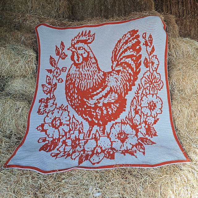 Inspired by my sister's chicken-raising stories, I created a unique crochet pattern combining a chicken with a floral motif as a tribute to her.