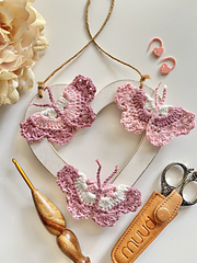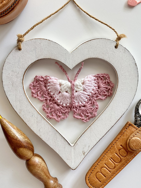 Butterflies are made in one piece in only 2 rounds + 2 rows, with no sewing required.