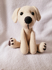 * Scraps of desired color yarn (for the collar, nose and paw pads optional)