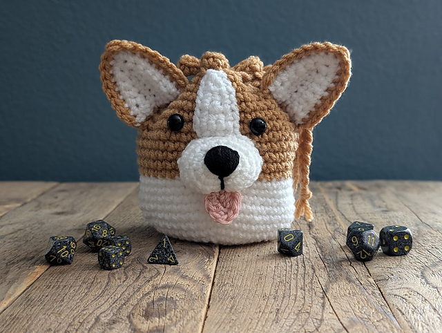 Unleash your creativity with this Crochet Corgi Dice Bag Pattern! Perfect for tabletop gamers and crochet enthusiasts, this downloadable PDF guide will walk you through crafting your own adorable corgi dice bag, complete with big ears, a boopable nose and a derpy tongue. Whether you're playing Dungeons & Dragons, Magic: The Gathering, or any other gaming adventure, this charming companion will keep your dice secure and add a touch of whimsy to your tabletop experience!