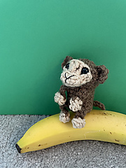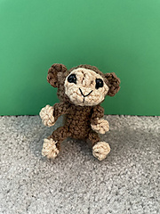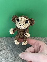 this is a free pattern to make a 3 1/2 inch monkey. the hands and feet are made with bobble stitches, and the only sewing is to attach the ears and face on.