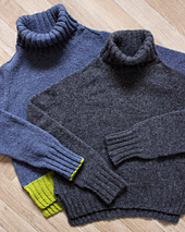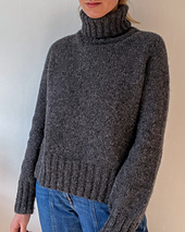 The Eken Sweater is a relaxed sweater with a high turtle neck and contiguous shoulder shaping. It is finished with 2x2 rib on the split hem and turtle neck.