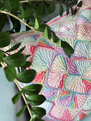 Shelly Square is worked in rows back and forth, alternating RS and WS. Each macro-round consists of several shells.