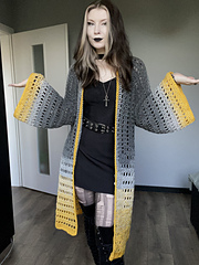 The Nocturne Cardigan puts a fresh spin on the classic hexagon design, combining a familiar shape with a unique twist. The textured stitch pattern adds depth and character, while the extended, flowing sleeves bring a touch of drama, making you feel like a modern-day witch.