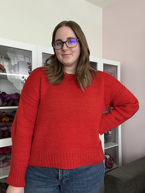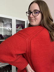 The details on this pullover were inspired by the sweater Taylor Swift wore to the 2024 AFC Conference Championship football game where the Kansas City Chiefs secured their spot in the Super Bowl, and the song “The Alchemy” from Swift’s latest album, The Tortured Poets Department. While Swift was a huge inspiration for me, the overall design is classic, timeless, and perfect for any knitter.