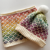 Works great with ombre or gradient yarns, paired with a solid colour.