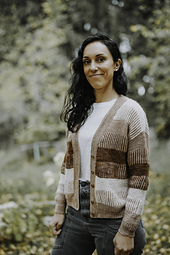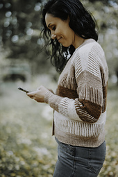 1 (1, 1, 2, 2, 2, 2, 2, 2, 2) skein or 347 (380, 434, 477, 521, 564, 607, 651, 694, 737) yards [317, (357, 397, 437, 476, 516, 555, 595, 635, 675) m] yards in color 3 - shown in **Bad & Bougie** (brown).